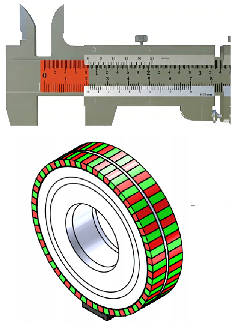 C-HAUS’s off-axis magnetic encoder chips, such as the popular iC-MU series and the latest iC-MUE, utilize an advanced decimal Vernier (Nonius) engine technology. This technology calculates absolute position by scanning two code tracks with different periods, enabling the system to obtain the current absolute position instantly upon power-up without the need for a battery.